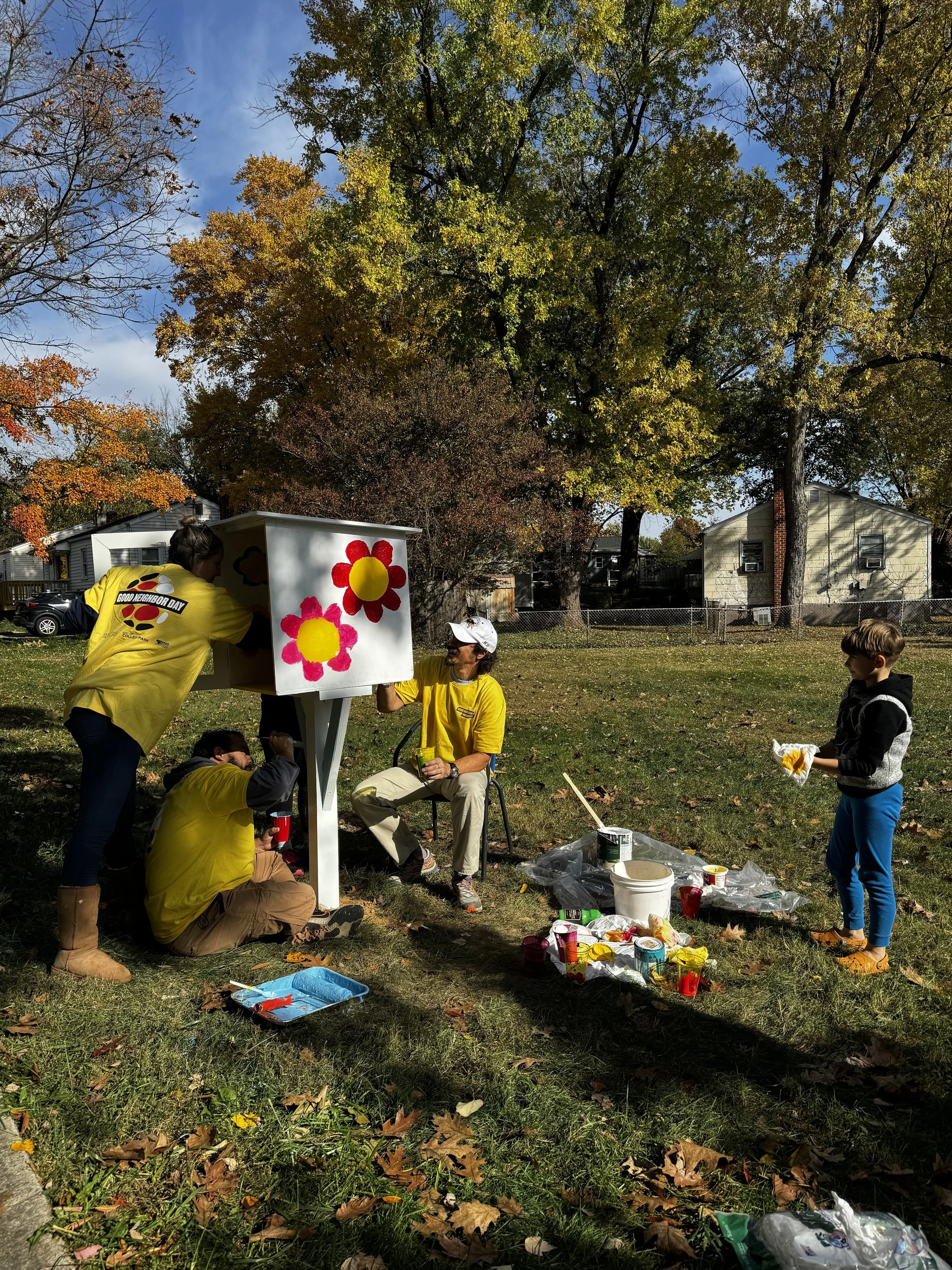 Worked with neighbors and local DMV artist to build little library and little pantry along with leading to build out benches and paint the stormdrain.